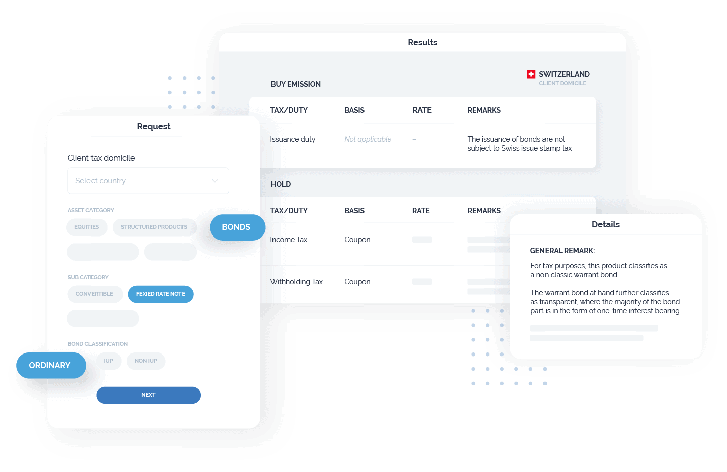 The Apiax Tax App allows assessing the tax impact of investment recommendations. With only a few clicks, it enables the creation of personalised, value-added investment advice and empowers financial institutions to improve their product portfolio.